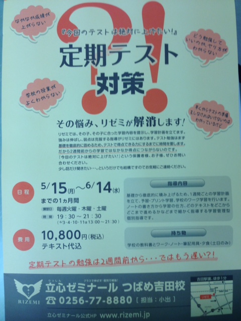 吉田地区にはテスト対策のチラシを新聞折り込みしました。