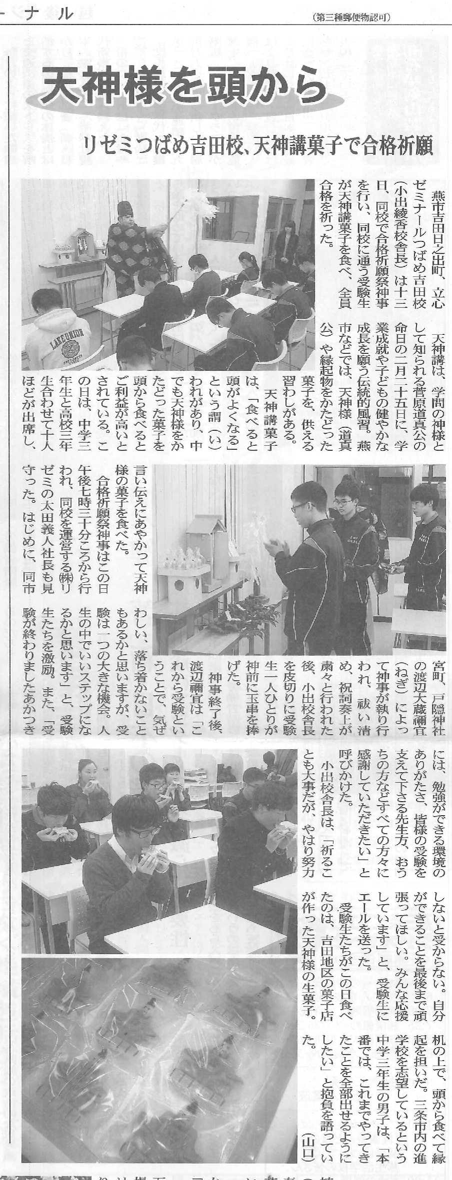 2月13日(火)につばめ吉田校にて天神講の合格祈願祭を開催しました。