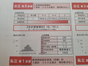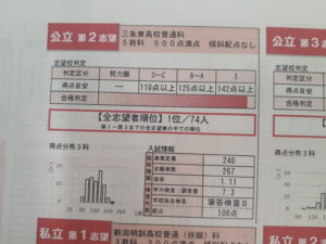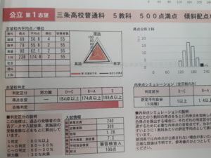 こちらは3教科ですが、三条高校志願者の中で2位、三条東志願者の中では1位を獲得しました。