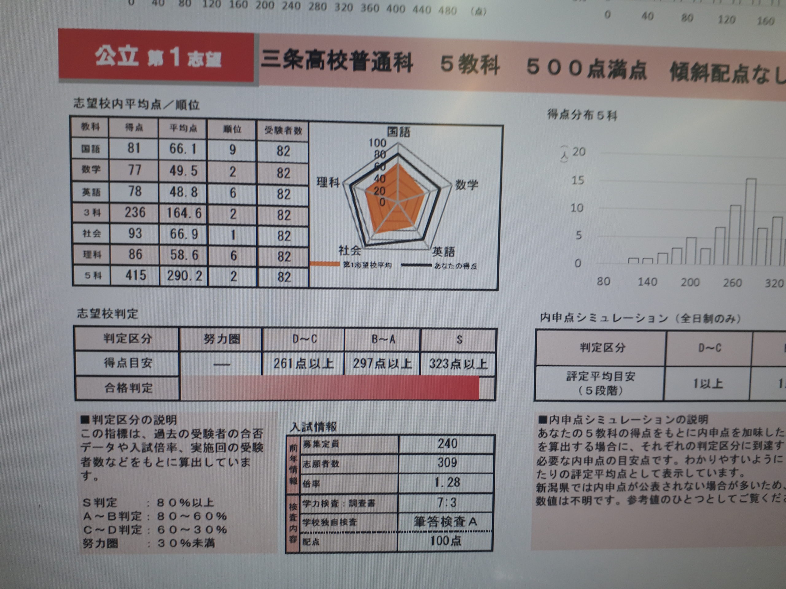 Sくん、まだ受験母数は少ないながら、三条高校志願者内で2位でした。おめでとう!次回は1位を!