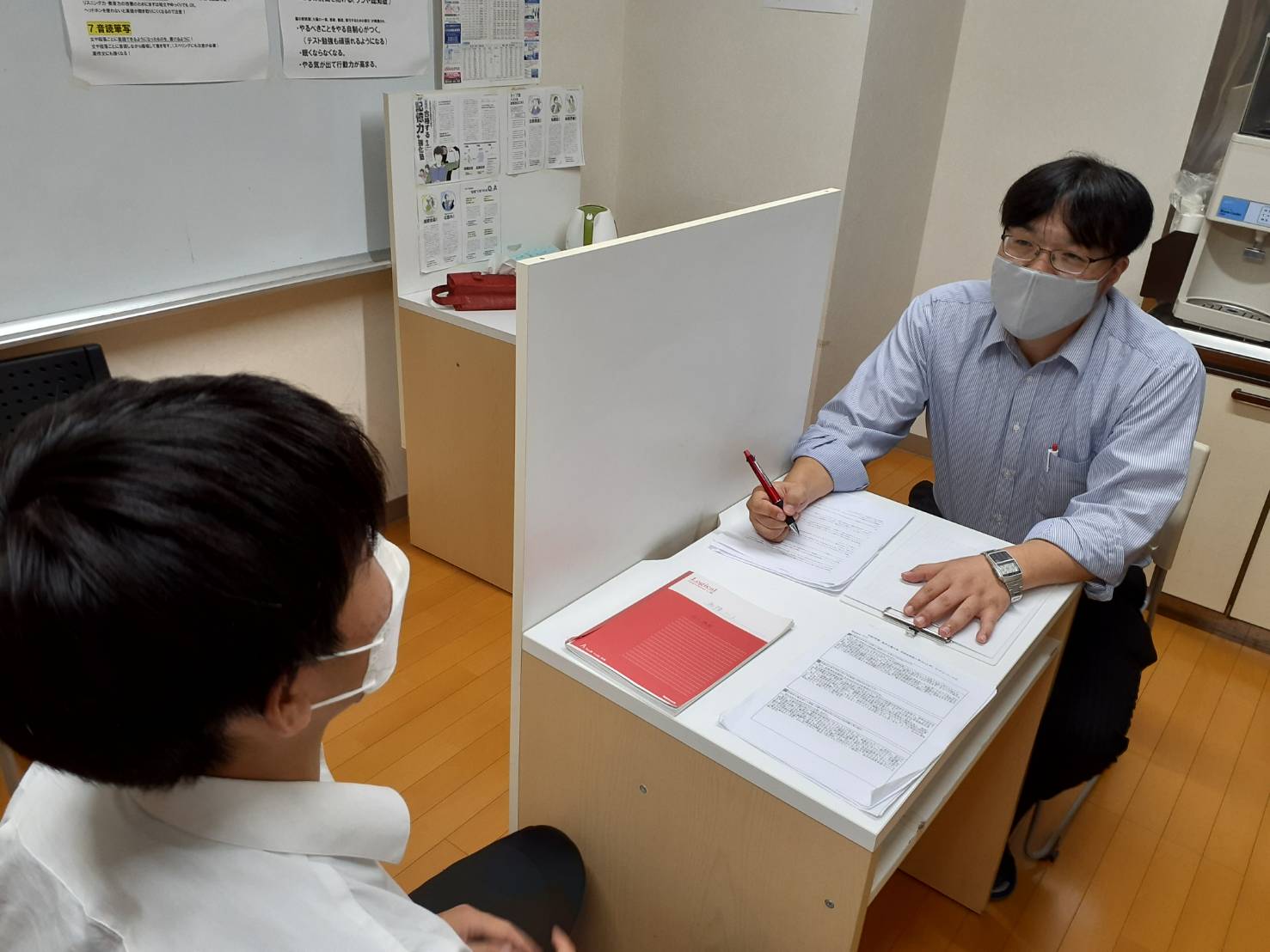 上の写真は今月上旬に、推薦入試で大学を受験した生徒の面接練習です。