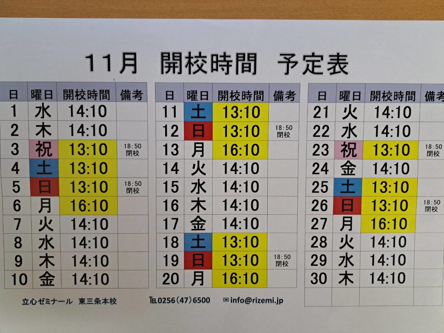 11月は前半に中学校の定期テスト、後半に高校の定期考査が実施されます。