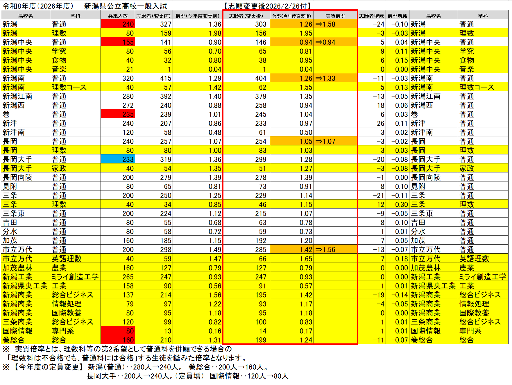 2026年度 新潟県高校入試 最終倍率 速報
